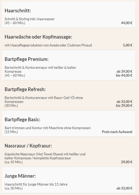 Preise und Leistungen im men´s need Barbershop